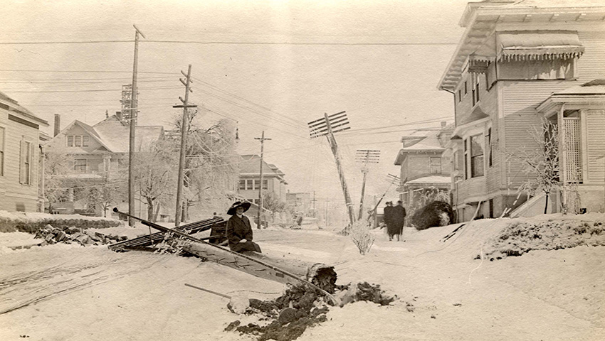 В XVIII веке точных метеорологических подсчётов ещё не велось, поэтому все цифры о «Великом снегопаде 1717-го» довольно условны. Эта буря сложилась из четырёх снежных штормов, которые один за другим ударили по Новой Англии во время и без того суровой зимы. Эпицентром стихии стал Бостон. Целые дома скрылись под снегом по самую крышу, и людям приходилось выбираться через окна вторых этажей. Снегоуборочной техники тогда не существовало, поэтому оставалось лишь ждать, пока снег растает. Дороги не работали больше недели. Фотографий той эпохи, конечно, не сохранилось.