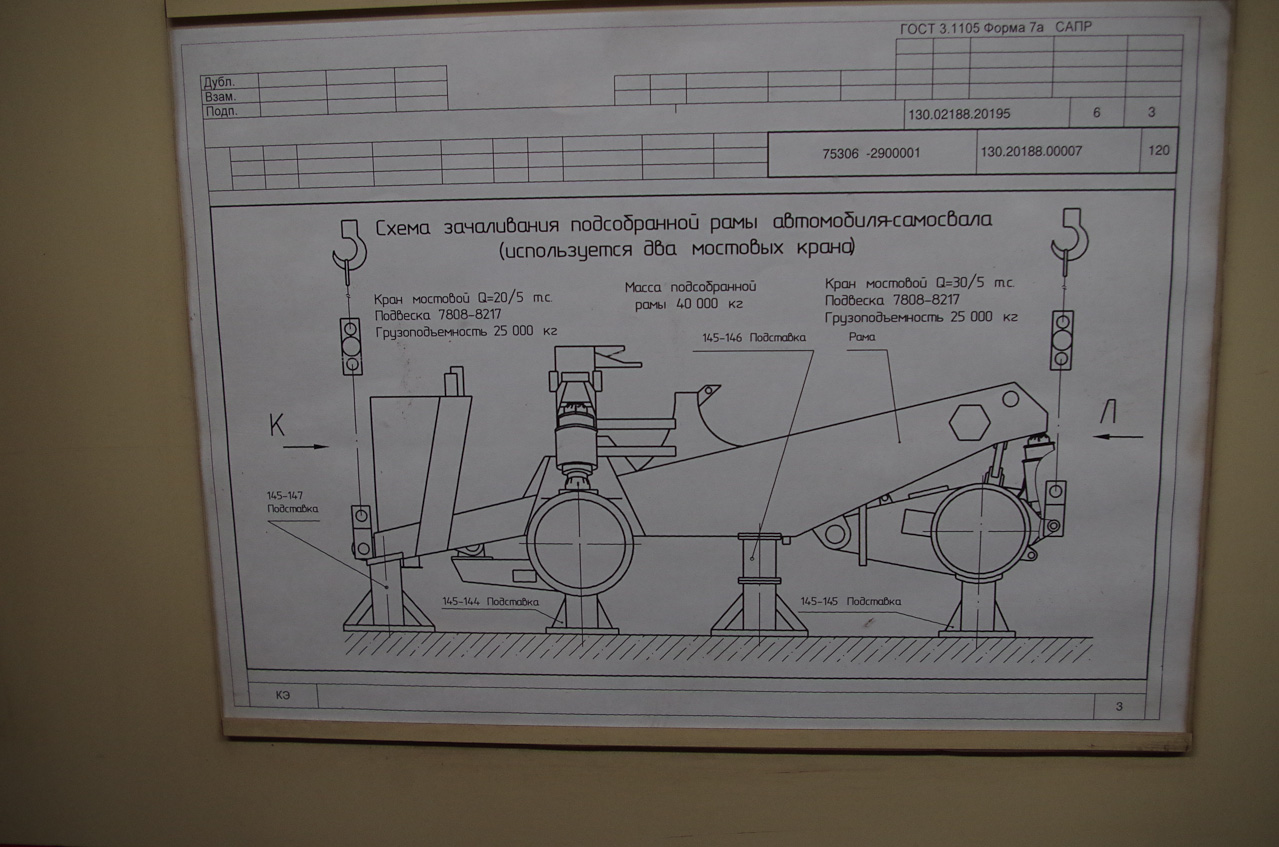 В самом начале конвейера нашелся вот такой ключик на 60. Незаменимый инструмент для сборки БелАЗов 🙂 Интересно, сколько же грузовиков было собрано с его помощью. Вот эта прелесть в собранном состоянии весит 40 тонн! 40 ладокалин! Как она перемещается по цеху, можно увидеть на следующем снимке.