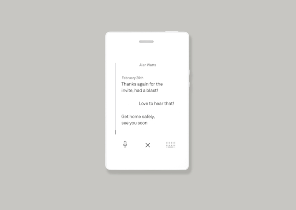 Light Phone оснащен экраном, выполненным по технологии электронных чернил, и сенсором — что на выходе напоминает электронную бумагу на Amazon Kindle. Корпус матовый, а экран занимает большую часть лицевой стороны, отображает текст и поддерживает виртуальную клавиатуру для набора текста.