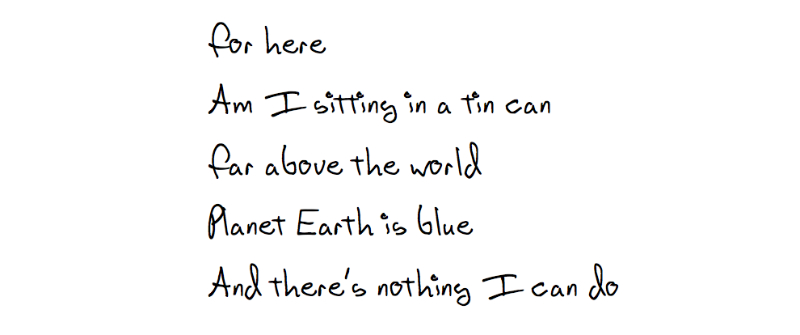 Проникнувшись духом Боуи, можно переписать мечтательный припев из Space Oddity его почерком: